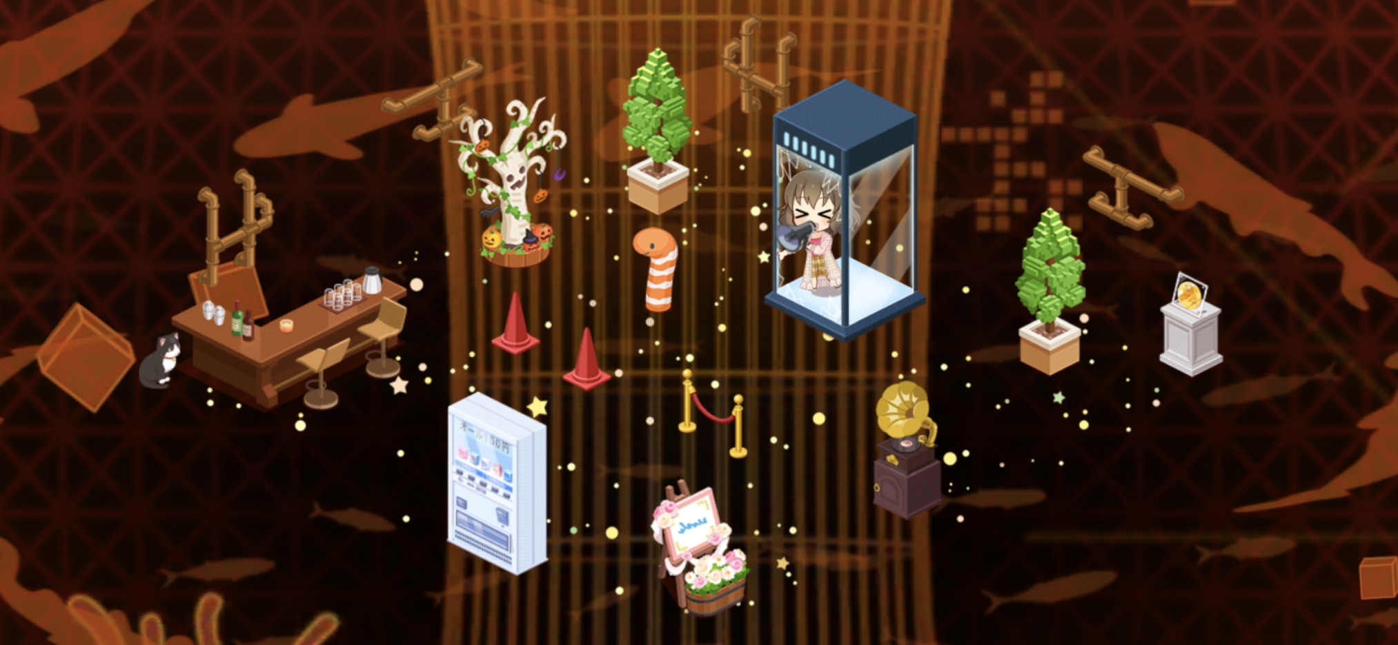 壁のパイプは、あてもなく漂ってるイメージで付けてみた。透明壁だからって