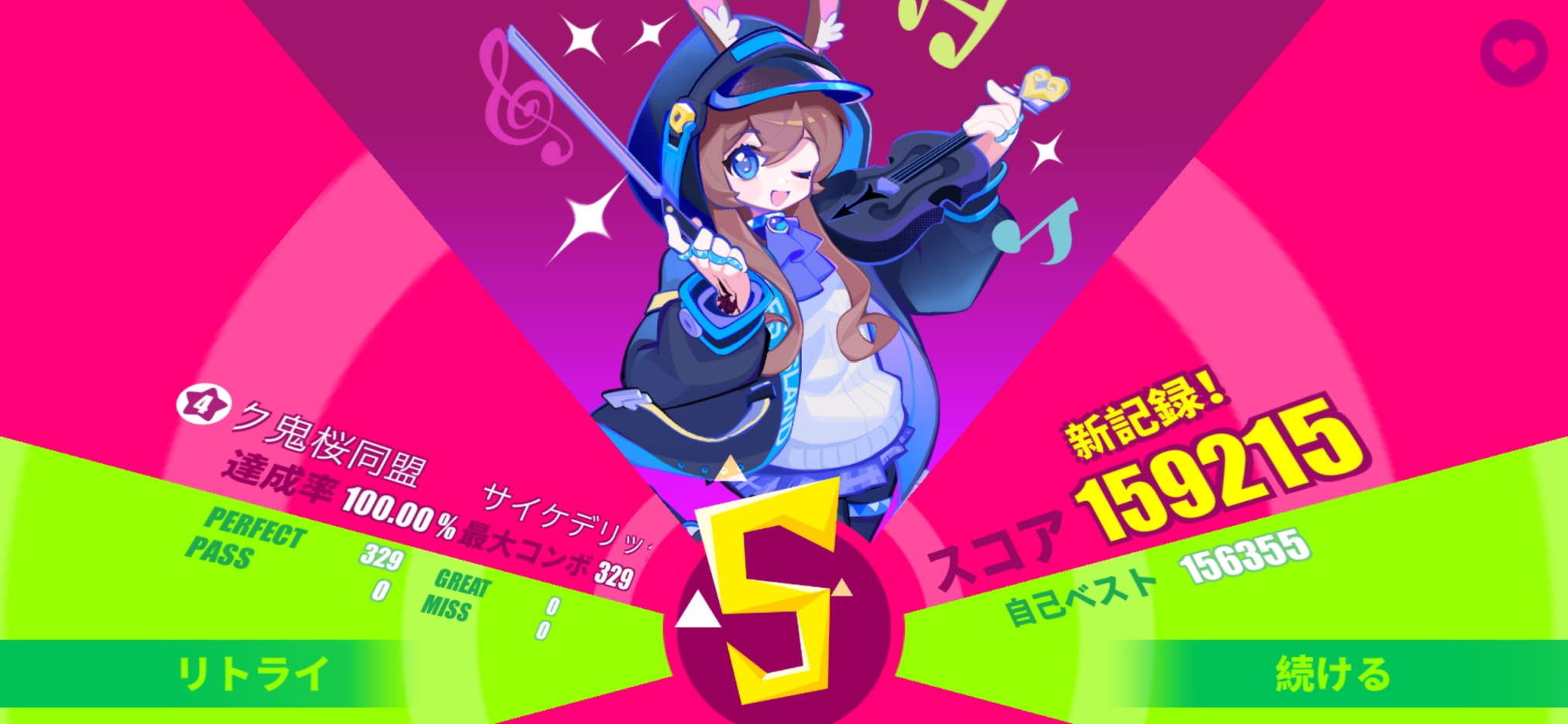 っしゃぁぁぁぁぁい!!ヤバい超嬉しい。つーかここまで多いノーツの金 S 初じゃね?