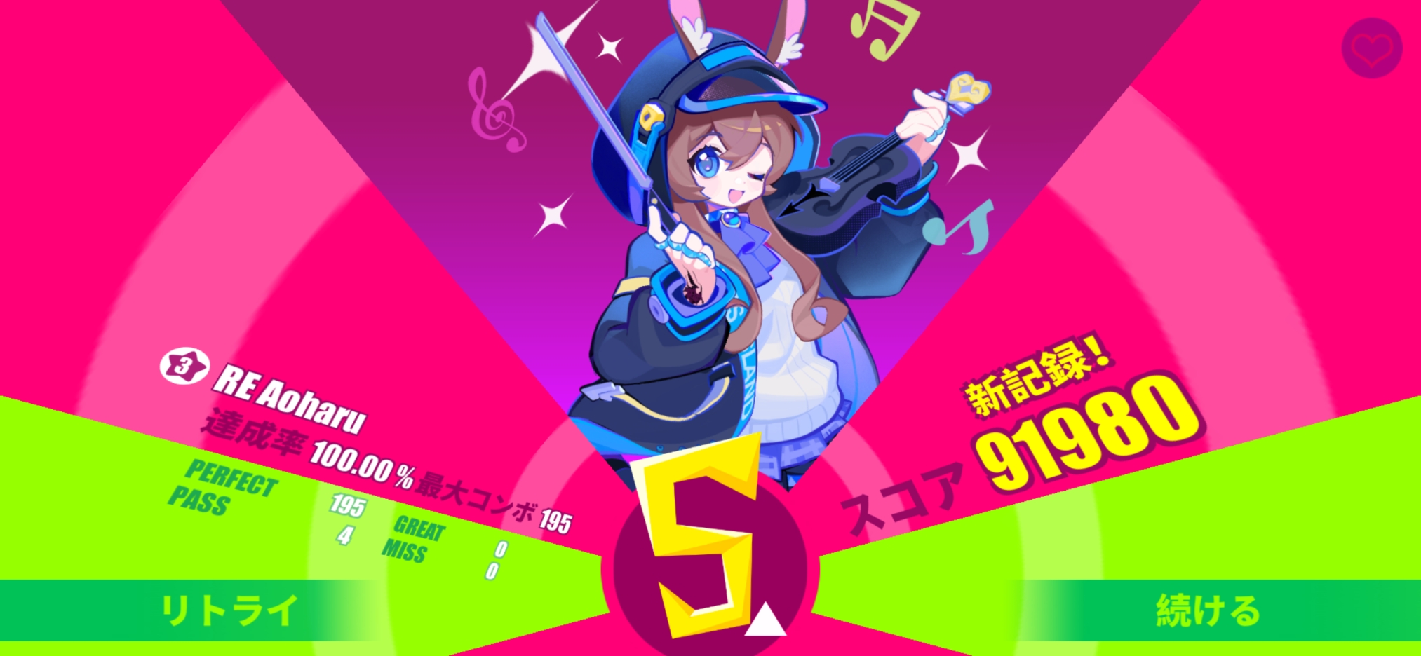 あと超ノれる曲だから勢いで突っ走れるのが本当にいい。大分苦戦はしたけどね。20 回目で