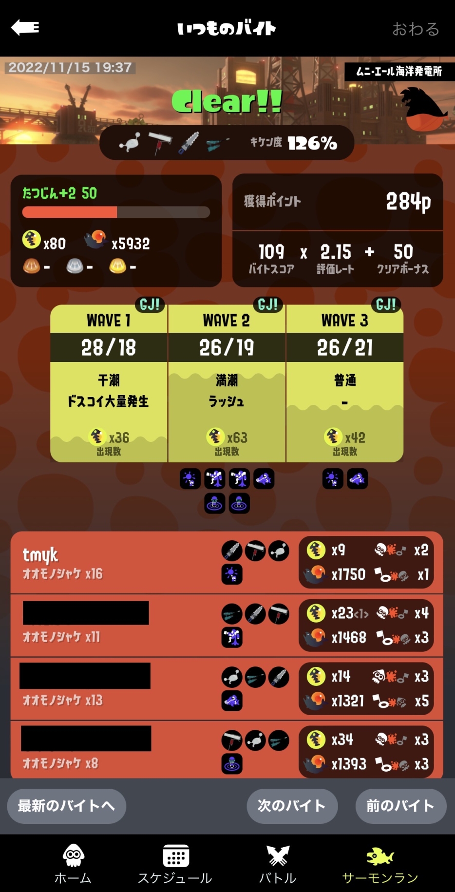 達成感といったら…思わず カモンナイス 3 連打が飛び出したよ。サメライドでバクダン撃破の