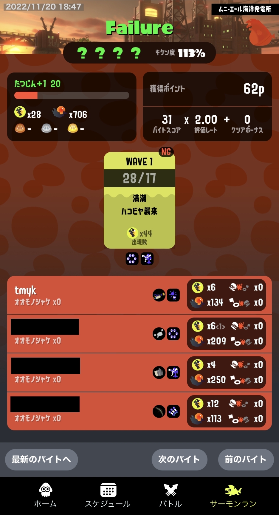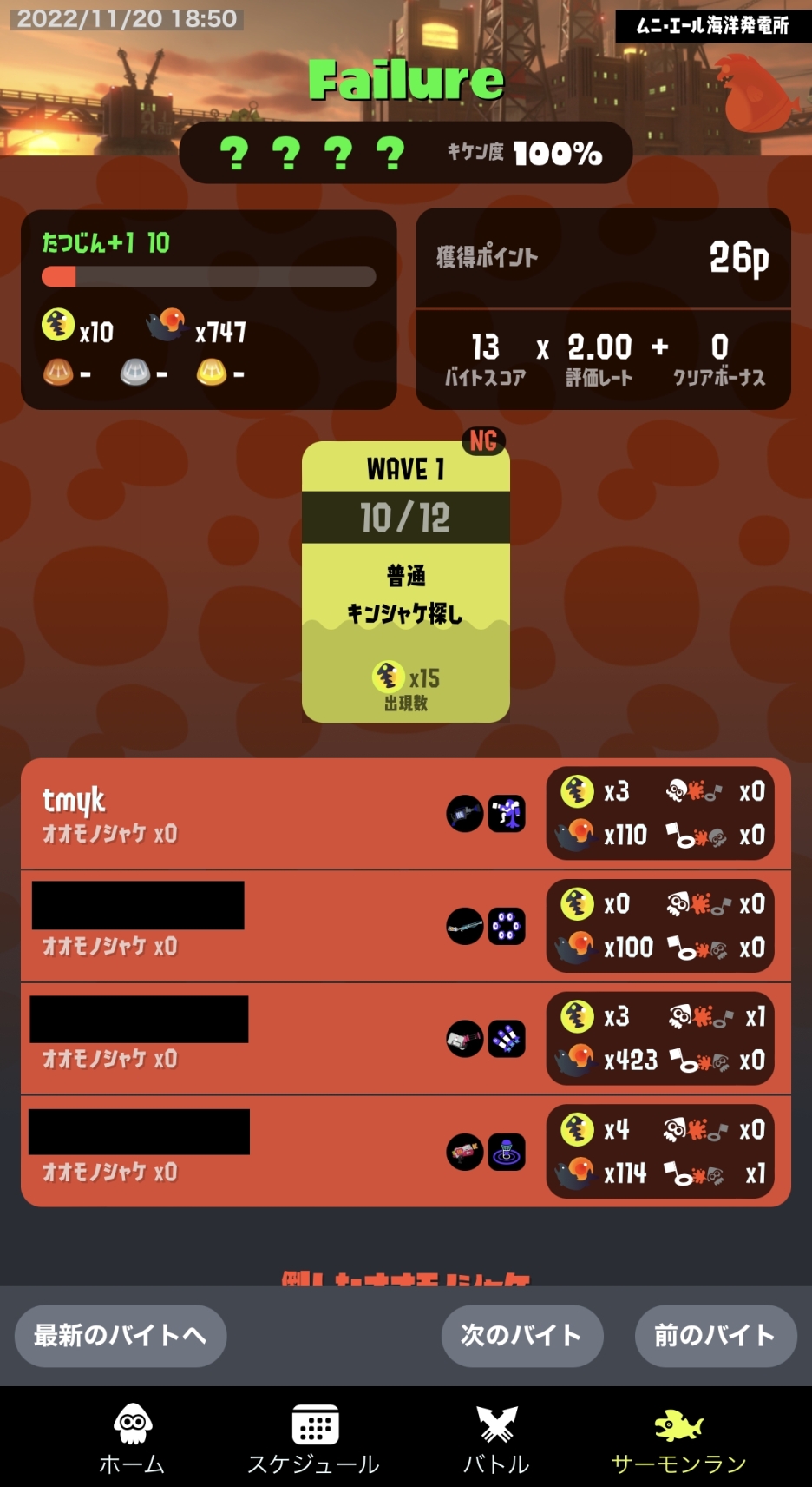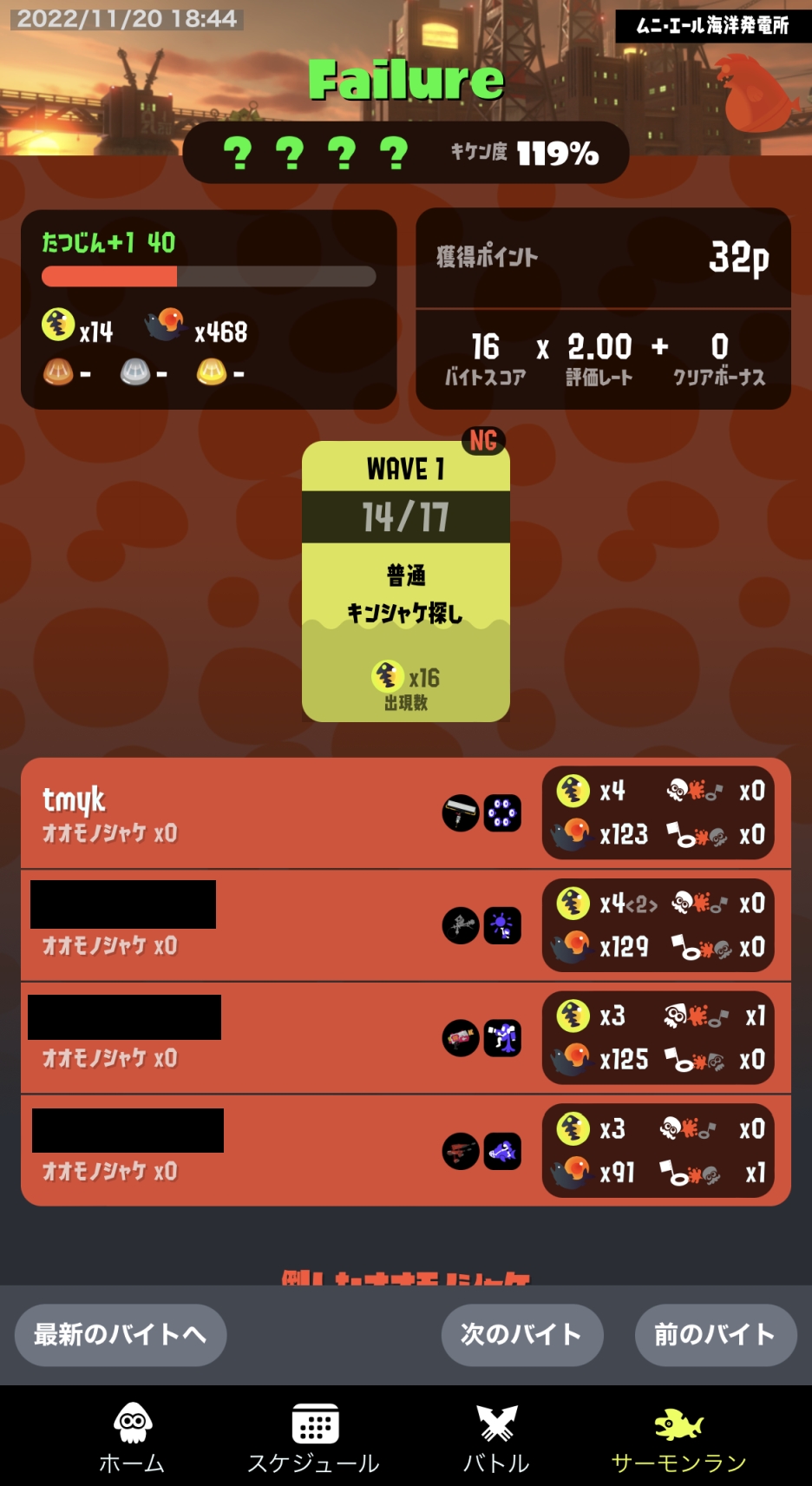 ブキ編成は悪くないかね。少なくとも前回よりは。ストレート落ちしたのもそうだが、